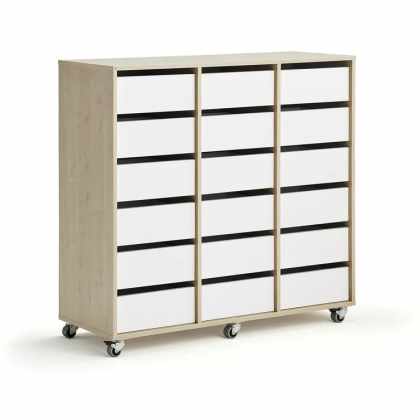 Študentská úložná skrinka CASPER, 18 zásuviek, breza, biela