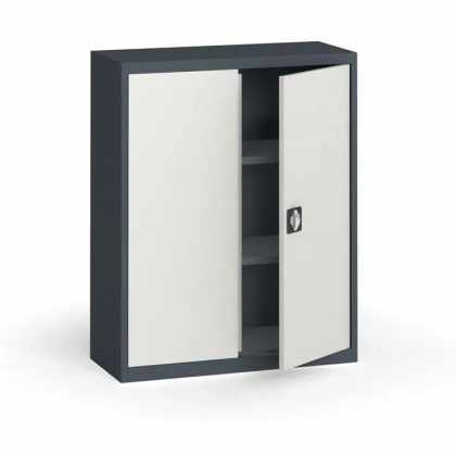 Plechová policová skriňa METAL, 1150 x 950 x 400 mm, 2 police, tmavo sivá / sivá
