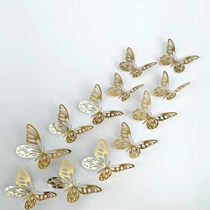 Samolepka na stenu “Metalické Motýle – Zlaté 2” 12 ks 8-12 cm