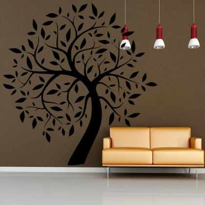 Veselá Stena Samolepka na stenu na stenu Listnatý strom Farba: černá
