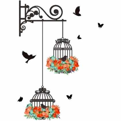 Veselá Stena Samolepka na stenu na stenu Vtáčiky v klietke