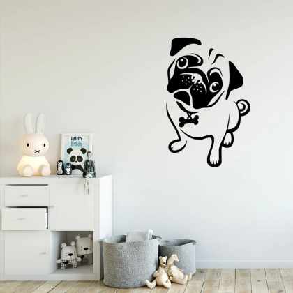 Veselá Stena Samolepka na stenu na stenu Mopslík Farba: černá
