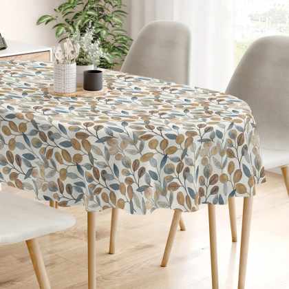 Goldea oválny obrus loneta – hnedý a modrý eukalyptus 120 x 160 cm