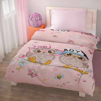 Kvalitex Detské bavlnené obliečky PUHU ružová, 140 x 200 cm, 70 x 90 cm