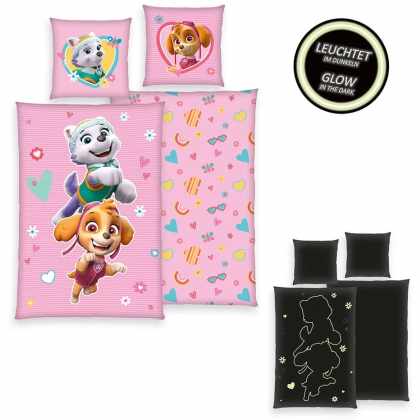 Herding Detské bavlnené obliečky Labková patrola Svietiace dievčatá, 135 x 200 cm, 80 x 80 cm