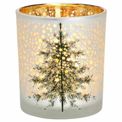 Sklenený svietnik CHRISTMAS TREE 10 cm biely