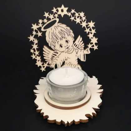 AMADEA Drevený svietnik anjel, výška 10 cm