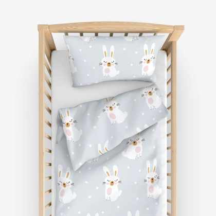 Goldea detské bavlnené obliečky do postieľky – zasnení králičkovia 90 x 130 a 40 x 60 cm