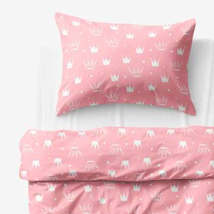 Goldea detské bavlnené obliečky – korunky na ružovom 140 x 200 a 70 x 90 cm