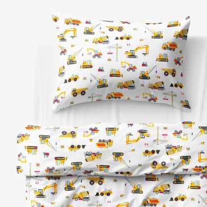 Goldea detské bavlnené obliečky – nákladné autá a bagre 140 x 200 a 70 x 90 cm