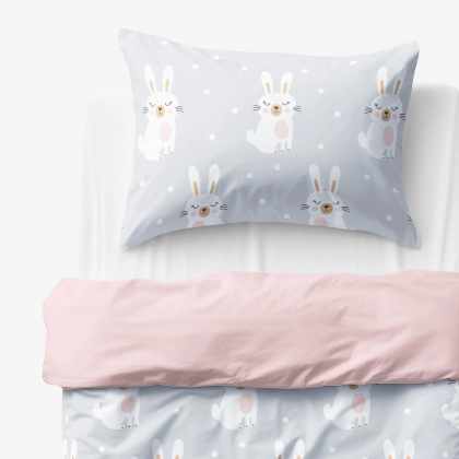 Goldea detské bavlnené obliečky duo – zasnení králičkovia s púdrovo ružovou 140 x 200 a 70 x 90 cm