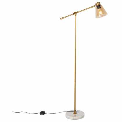 Art deco stojaca lampa bronz s mramorom a jantárovým sklom – Nina