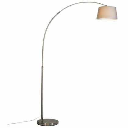 Moderná oceľová oblúková lampa so sivým látkovým tienidlom – Arc Basic