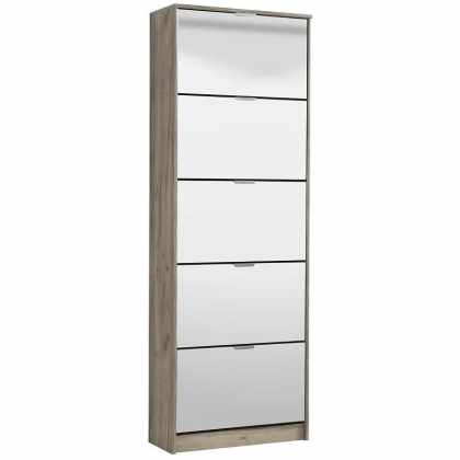 Výklopný botník 5-dvierkový so zrkadlom Vincent – dub šedý