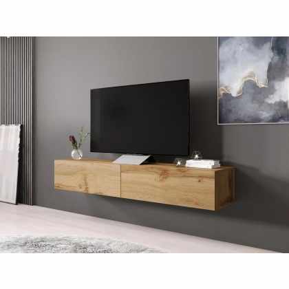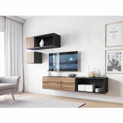 Obývacia stena Bralani XXIV, Farby: čierna + čierny lesk + dub artisan, Osvetlenie: bez osvetlenia