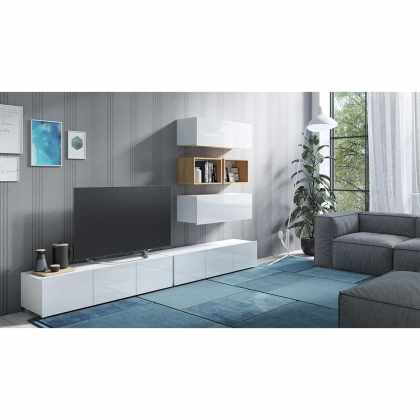 Obývacia stena Bralani XXVII, Farby: biela / biely lesk + dub zlatý
