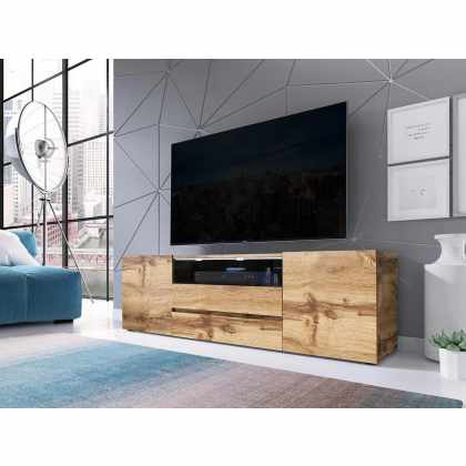 TV stolík/skrinka Cassandra, Osvetlenie: osvetlenie LED biele, Farby: Slivka + Čierny lesk