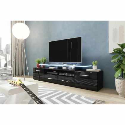 TV stolík/skrinka Cassandra, Osvetlenie: osvetlenie LED biele, Farby: čierny / čierny lesk