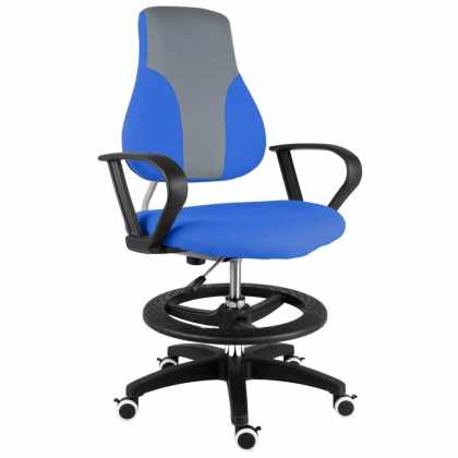 Detská rastúca stolička Neoseat KINDER PLUS — látka, sivá/modrá