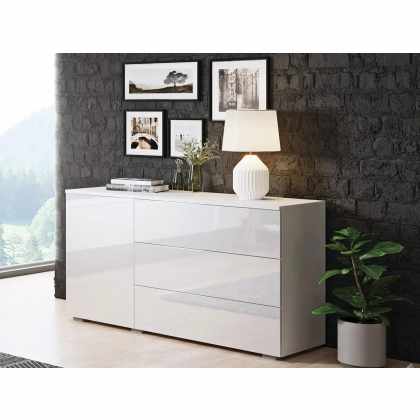 Komoda so zásuvkami Bamisio 150, Farby: biela / biely lesk