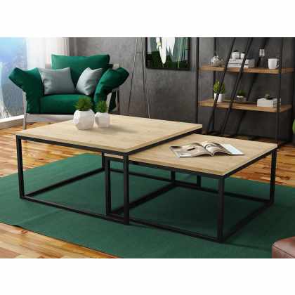 Zostava 2 konferenčných stolíkov Kirezo, Farba: Čierna/Dub craft zlatý