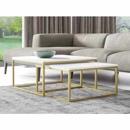 Zostava 2 konferenčných stolíkov Kirezo Zlatý, Farba: zlatá/arktická biela