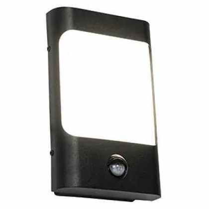 Nástenné svietidlo čierne vrátane LED IP44 s pohybovým senzorom – Khuvan