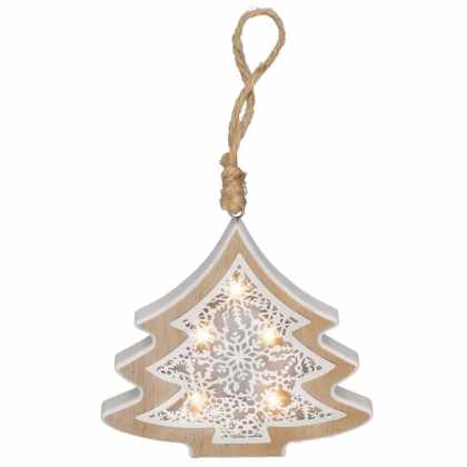 Solight 1V45-T LED vánoční stromek, dřevěný dekor, 6LED, teplá bílá, 2x AAA