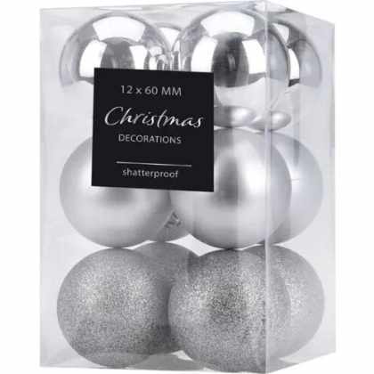 Sada vianočných ozdôb Agira 12 ks, strieborná, pr. 6 cm
