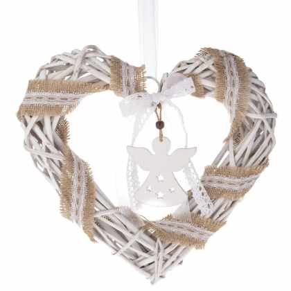 Vianočné závesné srdce s anjelom, 30 x 30 cm, biela