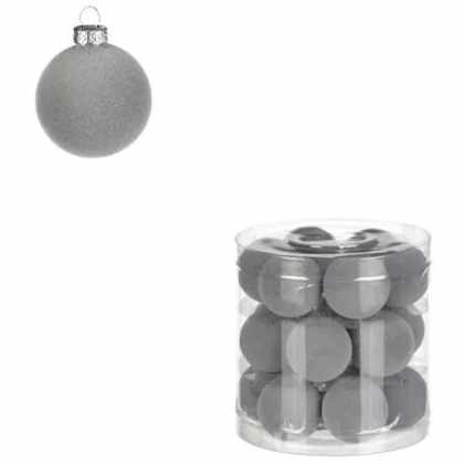 Vianočné plastové gule, zamatové, šedivá farba. Cena za 1 box/18ks.