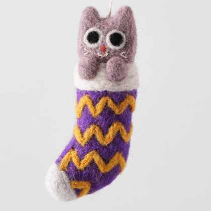 Wrap Vlnená vianočná ozdoba Viv mačka v vianočnej pančuche