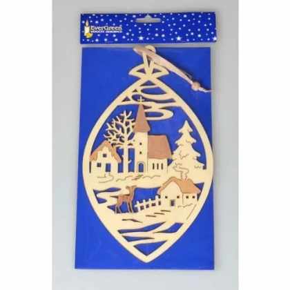 Vianočná závesná dekorácia Zimná dedinka, hnedá
