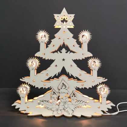 AMADEA Drevený svietiaci portál strom vianočný s betlehemom, farebný, 30×26,5×5,5 cm