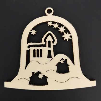 AMADEA Drevená ozdoba zvonček s kostolom 6 cm