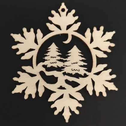 AMADEA Drevená ozdoba vločka so stromami 6 cm