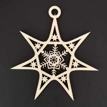 AMADEA Drevená ozdoba hviezda s vločkou 8 cm