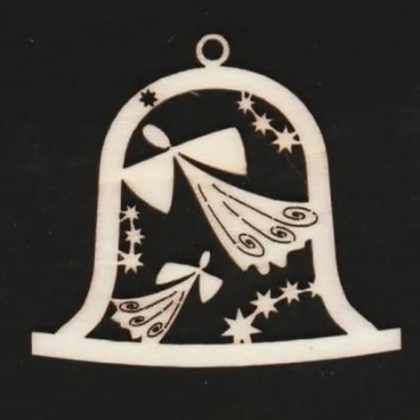 AMADEA Drevená ozdoba zvonček s anjelmi 6 cm