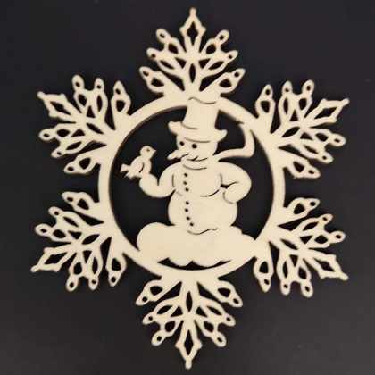 AMADEA Drevená ozdoba vločka so snehuliakom 9 cm