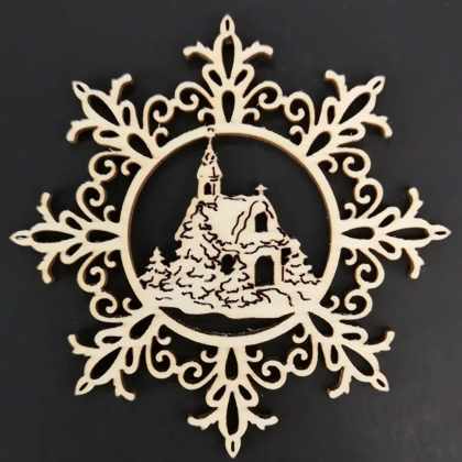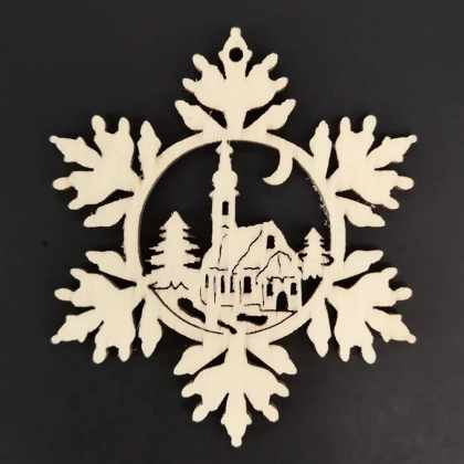 AMADEA Drevená ozdoba vločka s kostolom 6 cm
