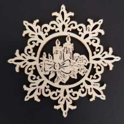 AMADEA Drevená ozdoba vločka so sviečkami 6 cm