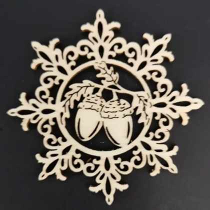 AMADEA Drevená ozdoba vločka so žaluďmi 9 cm