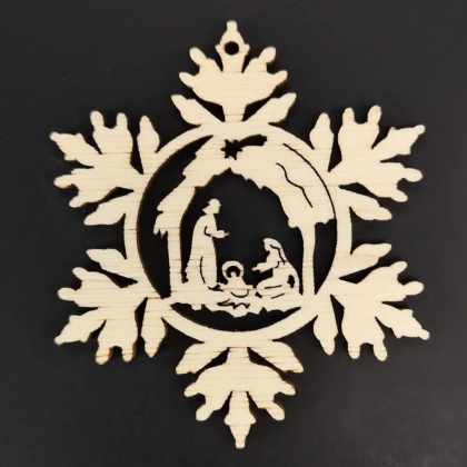 AMADEA Drevená ozdoba vločka s betlehemom 6 cm
