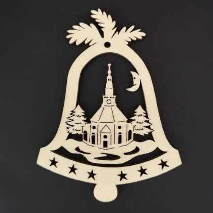 AMADEA Drevená ozdoba zvonček s kostolom 6 cm