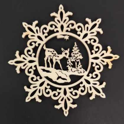 AMADEA Drevená ozdoba vločka so srncom 6 cm