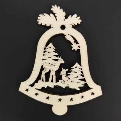 AMADEA Drevená ozdoba zvonček so srnami 6 cm
