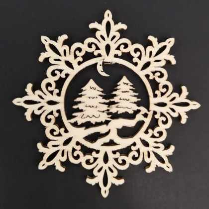 AMADEA Drevená ozdoba vločka so stromami 9 cm