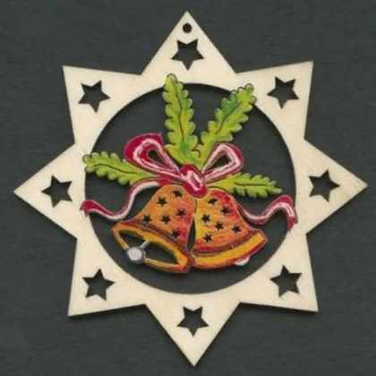 AMADEA Drevená ozdoba z masívu s vkladom – hviezda so zvončekmi 8 cm