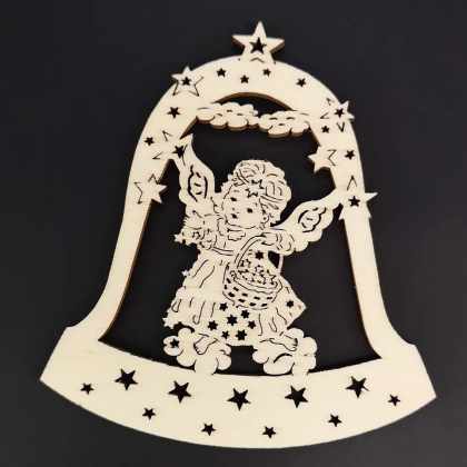 AMADEA Drevená ozdoba zvonček s anjelom 9 cm