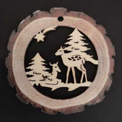 AMADEA Drevená ozdoba s potlačou kôry – guľa so srnkami 6 cm